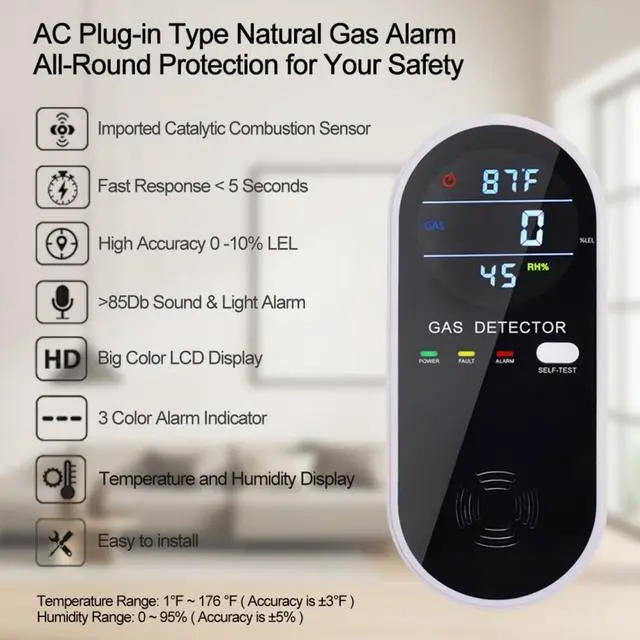 Reliability and Stability: This natural gas detector uses imported catalytic combustion sensor to achieve sensitive sensing and high precision, fast alarms, and protect your safety