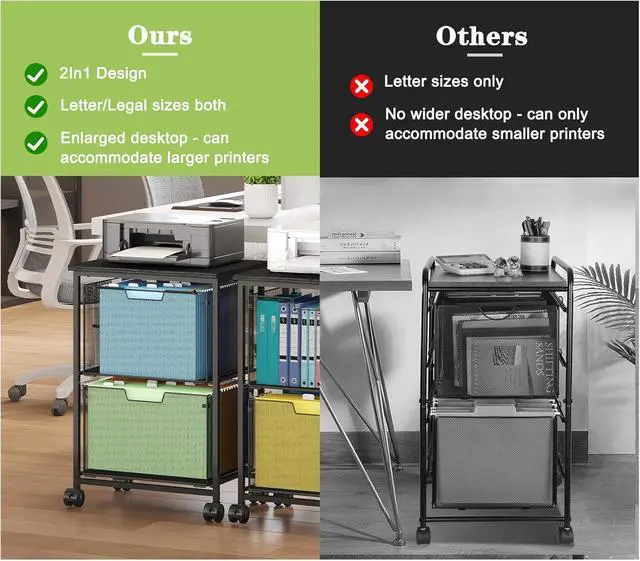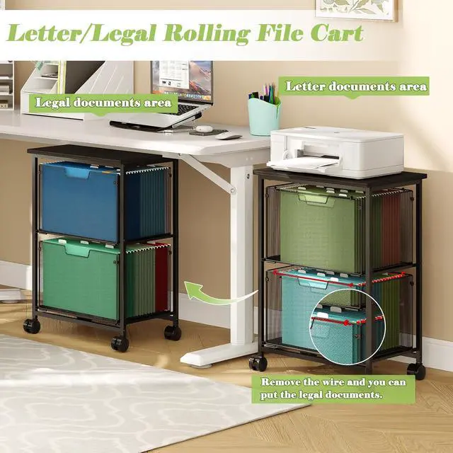 Overall Dimension: 13.4"D x 18.1"W x 26.3"H, 2 drawer file cabinet cart has a delicate and aesthetic design that can withstand high weight and can also be used as a decorative item.