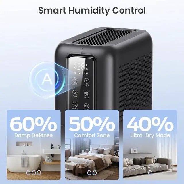 Compact & Portable Design Small enough for tight spots but tough enough for rooms up to 320 sq ft. Place it in bedrooms, bathrooms, RVs, or closetsits sleek look fits any decor.