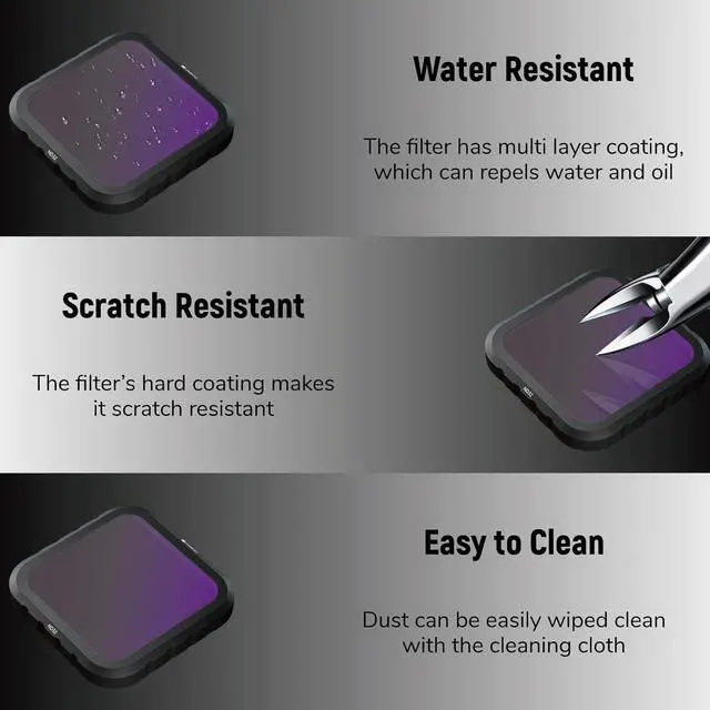 Ultra Strong Magnets It hold your filter firmly, even on high wind or high speed racing rated up to 70mph. This ND & CPL allows for hot swap quick filter changes and removals, helps to get 4K videos and crystal-clear pictures efficiently during climbing, cycling, skydiving, snorkeling, paragliding etc