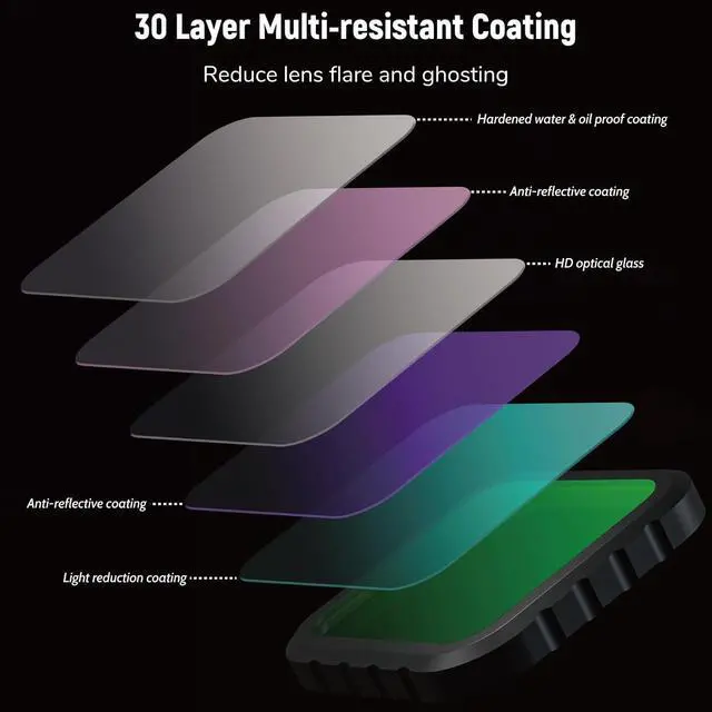 Enhance Color & ContrastCPL filters eliminated non-metallic surface reflections such as water and glass and enhance the color and contras, creating deep, rich scenic images. With this filter kit, you can easily handle a variety of lighting conditions from cloudy days to bright sunny days