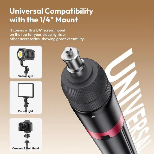 Universal 1/4" Mount CompatibleVersatile mounting option for video lights, panel lights, cameras, and ball heads.