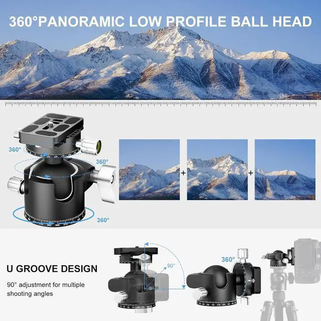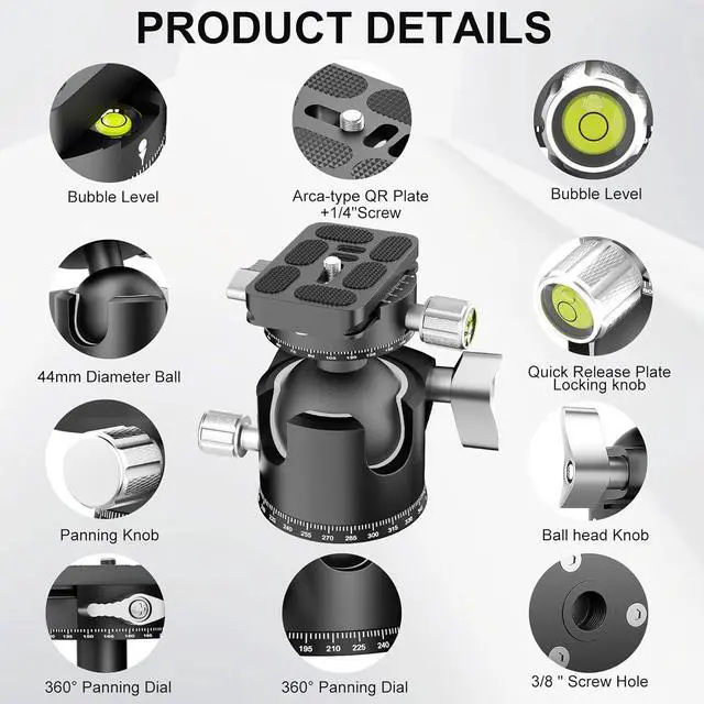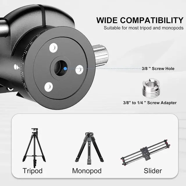 All Metal & CNC Machining44mm diameters camera ball head, more stable. 1/4 & 3/8 thread for any tripod, monopod or other equipments