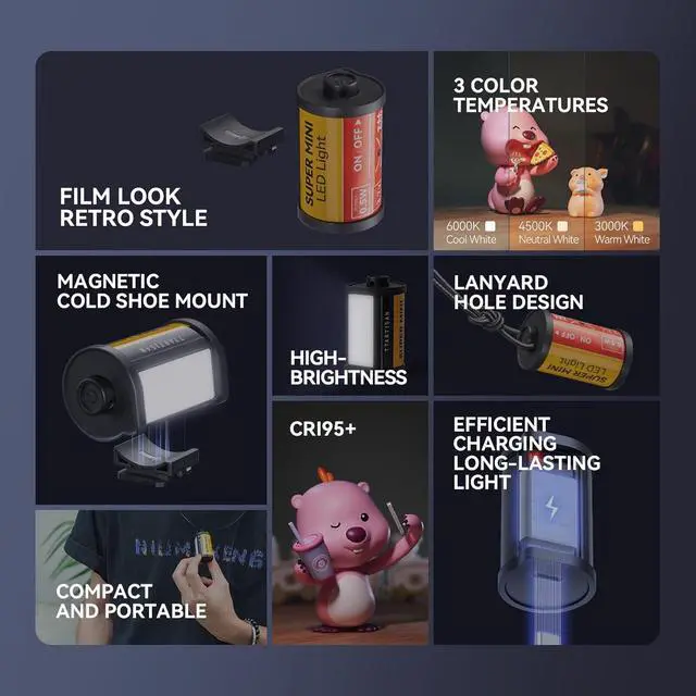 CRI 95+: This camera light achieves vibrant, true-to-life colors in your photos, making it perfect for enhancing your creative projects