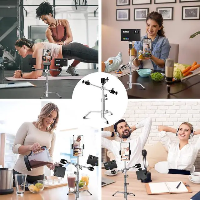 20" Mini Pocket C Stand, All-Metal Adjustable Small 20.8" C-Stand Short Tripod Stand with 13" Boom Arm Grip Head, 3 Ball Head, Sliding Leg for camera, smartphone, light, mic photography - Silver