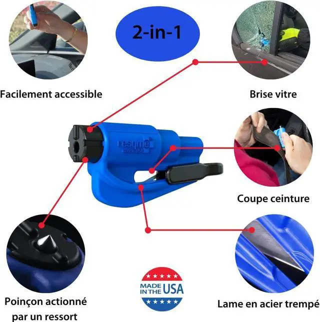 Made in USA, this 2-in-1, safety and survival tool, allows you to cut a jammed seatbelt and to break a side window in your car in case of emergency. Originally developed for first responders (firefighters EMTs, law enforcement agencies); has become an essential safety solution for all safety-conscious drivers. Over 8 Million Motorists Worldwide Carry
