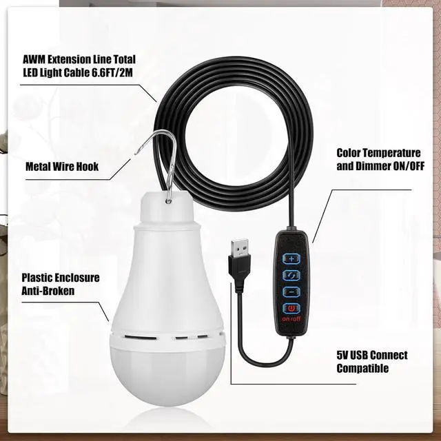 Portable Design: this LED camping bulb features delicate workmanship, designed with hooks on the top, easy for you to hang it on trees or tents, bringing you much convenience
