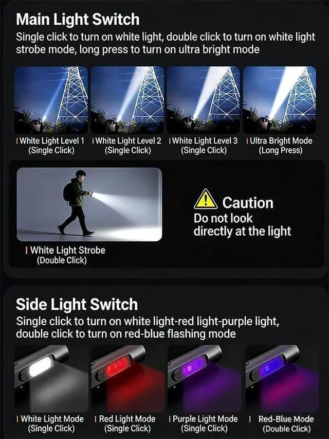 Compact, Smart & Extremely ConvenientSmaller than a lighter, with dual intuitive switches for instant mode control. Features USBC charging, a magnetic base, and a clip for hats or keychains. The battery lasts up to 10 hours, so its always ready when you are.