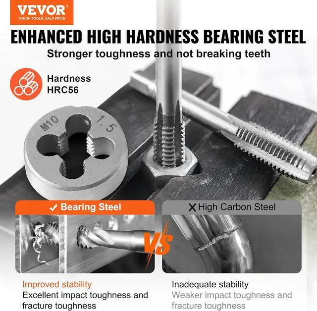 Professional Design: The tap and die kit features a hexagonal die design that distributes force more evenly during work. With stringent manufacturing processes, the product is robust, durable, and resistant to breakage. The tapered teeth of the tapping tools are specially designed for easy and smooth threading initiation while preventing over-threading.