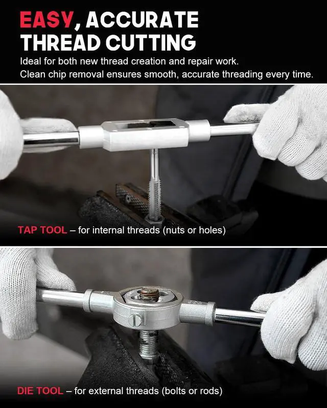 Adjustable Tap & Die Wrenches for Control: Adjustable tap and die wrenches provide secure locking, precise alignment, and steady pressure across multiple sizes. Supports straight, consistent threading