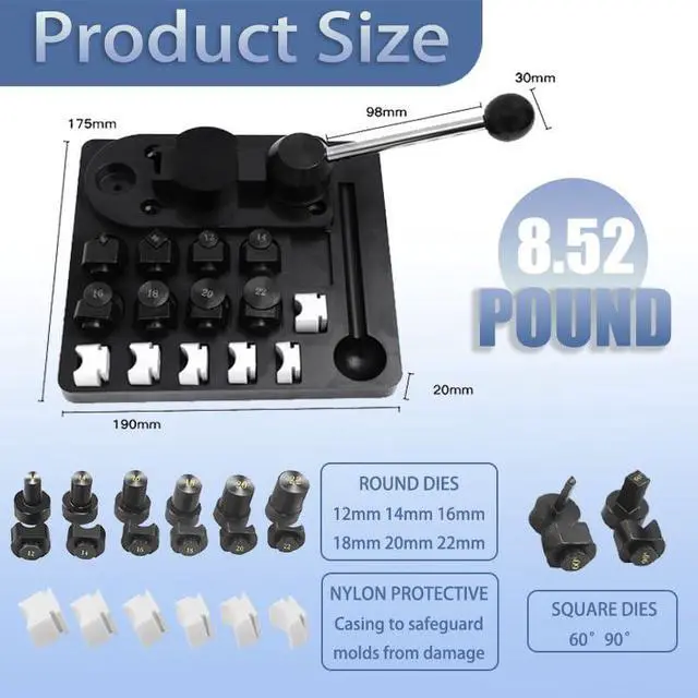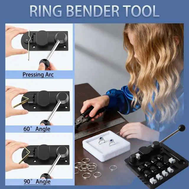 Multifunctional Ring Bending Tool: This durable spoon ring bending kit features dies in various sizes (12/14/16/18/20/22 mm and 90° 60°), designed for jewelry projects and DIY crafts, suitable for different ring and earring designs.