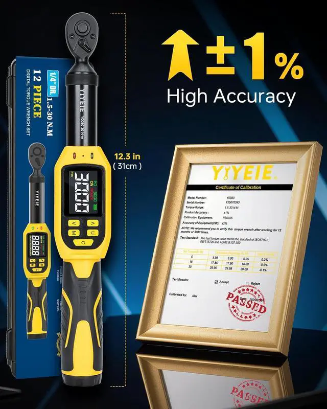 Durable & Reliable Warranty Premium chrome-vanadium steel, anti-slip grip, 1-year warranty. The 12-IN-1 torque wrench set, which includes a bit holder, universal joint, 3/8"" adapter, 4"" extension bar and 7 sockets (7-15 mm)ideal for bicycles, drones, lawn equipment and more