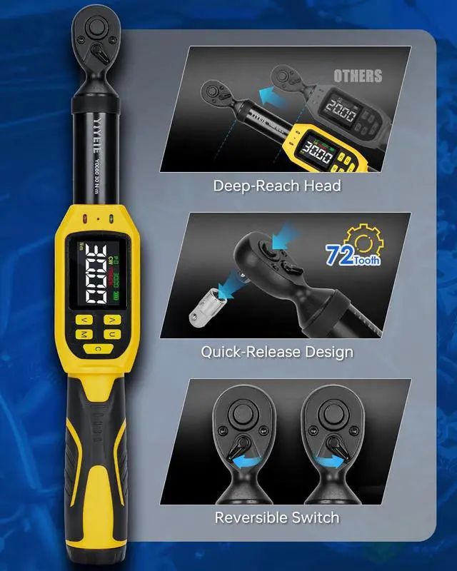 Easy Operation & Storage Slip in the included AAA batteries and the digital torque wrench is ready to use. The 72-tooth quick-release design ensures a secure fit and rapid socket swapping. The 3-minute auto-shutdown feature saves power. The case keeps it where you left itno lost time, no lost tool