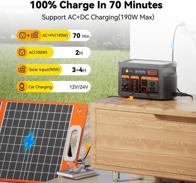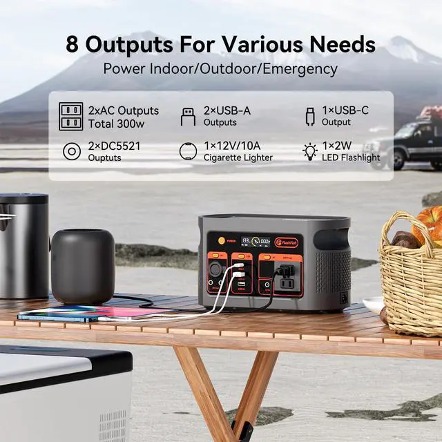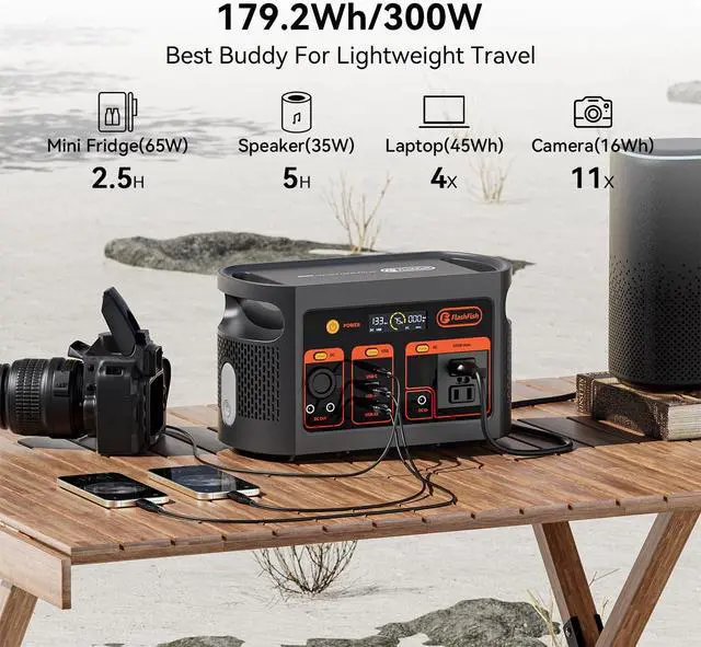 [Portable & Powerful] - With a 300W AC inverter, 179Wh capacity, yet weighing only 6.6 lbs, this solar generator is your perfect partner for outdoor adventure, camping, RV trip or even home backup.