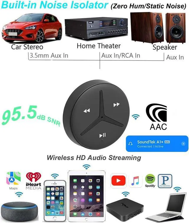 SAFE DRIVING: With this SoundTek Bluetooth car receiver, connect it with your car speaker via Aux jack, then you could make hands free calls while you are driving and could also enjoy your smart phone music wirelessly in your car speaker.