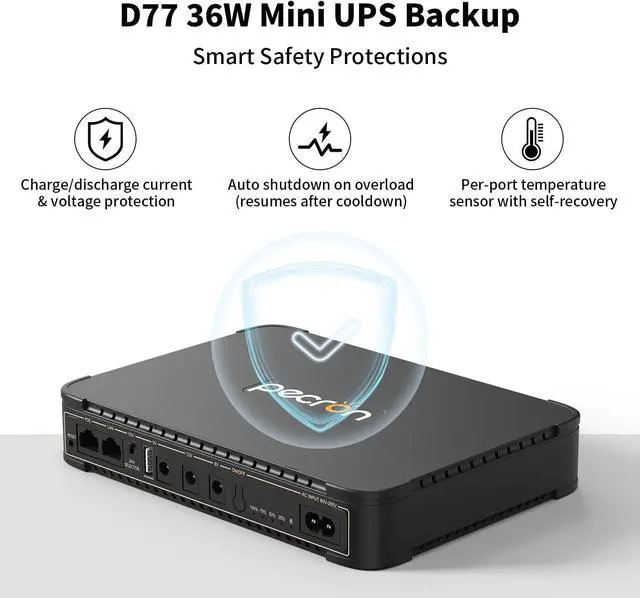 Built-in Multi-Protection Safety SystemThis uninterruptible power backup is built with a six-fold protection system, including over-charge, deep-discharge, over-current, short-circuit, voltage instability, and thermal protection. It reliably protects both your connected devices and the UPS battery itself, ensuring stable operation