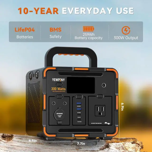 Portable and Solar-Ready Design Weighing just 7.17 lbs with a built-in handle, the EM300 is easy to carry for outdoor adventures. It supports solar charging and pass-through charging, allowing you to recharge while powering devices, making it ideal for camping, road trips, and emergencies.