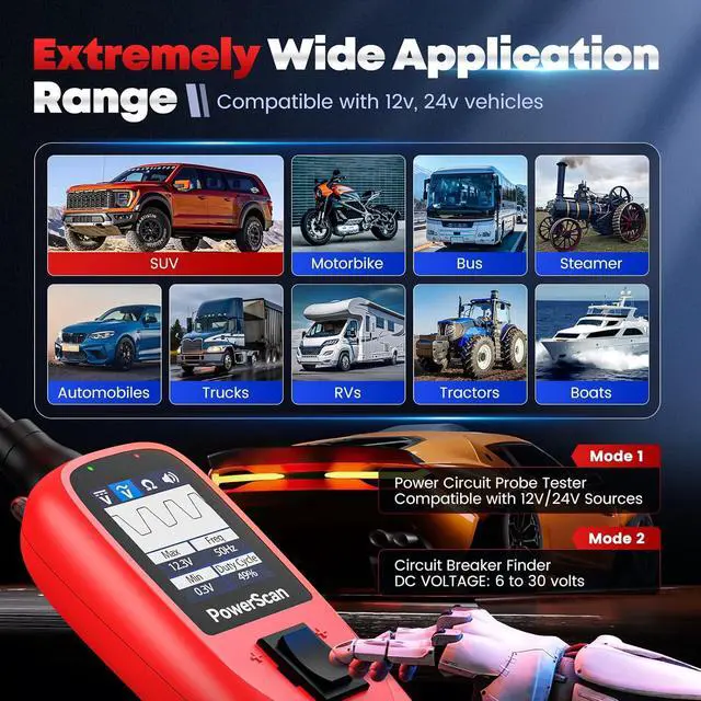 COMPONENT ACTIVATION & TESTThis automotive power circuit probe tester can activate components on/off-board electrical system/ equipment, is designed for car technician or car enthusiasts. By activating the signal generated by the component, you can accurately judged whether the component is intact, such as blower motor, power window motor, windshield wiper, rear window defroster, lights, radiator fans, fuel injectors, etc. circuit tester automotive tool can activate component in your hand/ in the vehicle/ with ground etc.