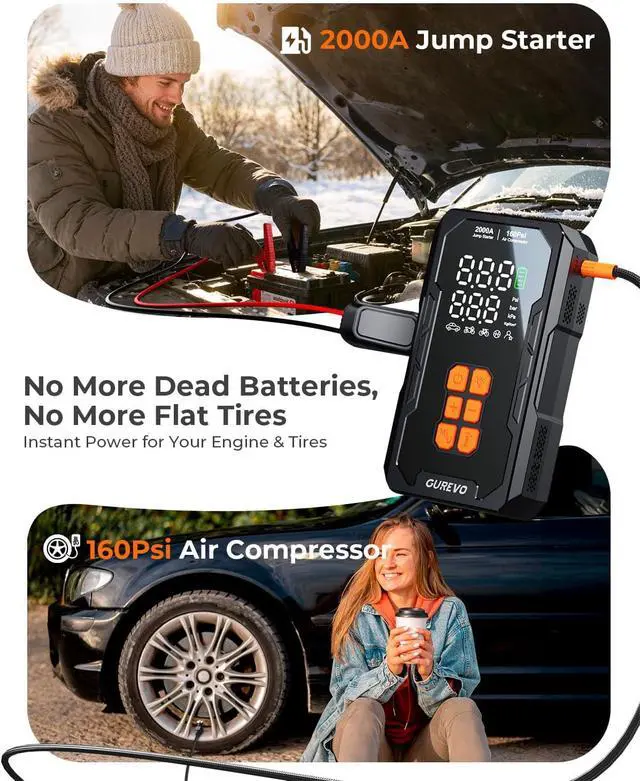 Worry-Free Inflation: This smart jumper starter with air compressor features a built-in high-sensitivity tire pressure sensor that monitors pressure changes in real time, displaying accurate readings on a 2.6 -inch screen. It automatically stops inflating when the preset pressure is reached (5 selectable modes). Fast and efficient inflation prevents over-inflation, protects your tires, extends their lifespan, and reduces the risk of blowouts. A reliable companion for your tire maintenance needs