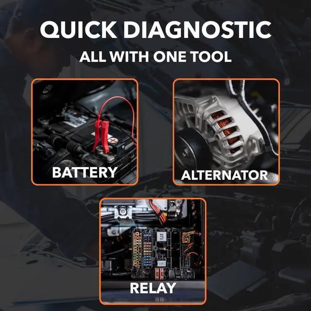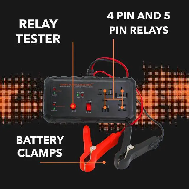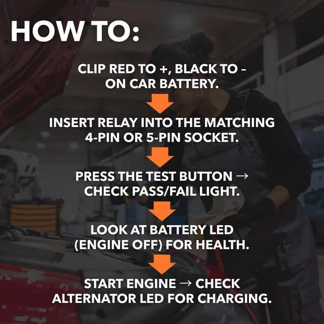 Quickly spot bad relays before they cause issues. This tool helps you confirm if your relays are firing correctly, removing the guesswork when diagnosing electrical issues. Connect directly to the vehicle battery with the included clamps to verify whether the battery is charged and the alternator is producing the correct output. Our tools are built tough for any situation. Garages, workshops, and roadside toolkits, this tester is lightweight, portable, and engineered to last for years of reliable service. Just plug in the relay, hit the TEST button, and watch the lights tell you everything you need to know. No complicated setup, no advanced mechanic skills required. Hook up to your car battery with the heavy-duty clamps to see if your batterys holding a charge and your alternator is producing the correct output.
