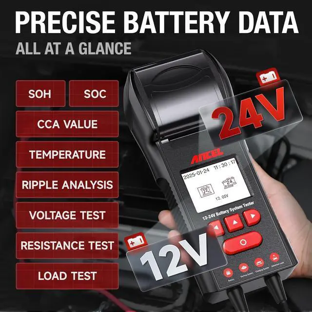 Save Time with Cranking & Starter Test - The BST600 battery tester is designed to assess the battery's cranking/starter system, determining whether your 12V and 24V electrical systems can generate sufficient power to start the engine. swift diagnostics identify potential issues in seconds, saving you time and giving you peace of mind on the road.