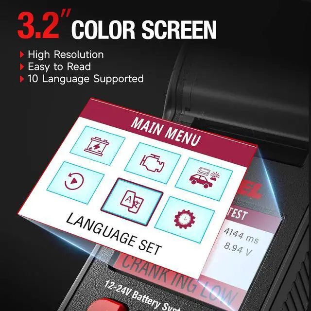 Advanced Tech - Featuring a 3.2" color backlit LCD display, the BST600 offers visual data that's easy to read. Encased in acid-resistant ABS plastic for durability and anti-skid properties, it comes with a silicone break-proof cover for the cable, Soft rubber buttons add a comfortable touch while ensuring they are wear-resistant. it also tests battery temperature against optimal ranges, preventing overheating or cold-related issues and thereby boosting performance, safety, and longevity.