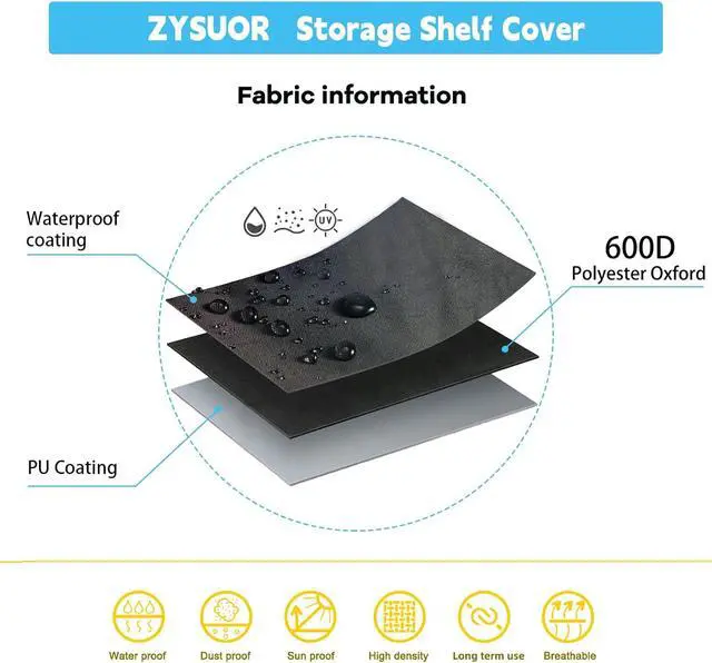 Useful storage coverThe front highly transparent and environmentally friendly PVC panel adopts a high-quality T-shaped side zipper design, making it easy to remove items from the shelves without removing the lid. Fully covering the rack from top to bottom, multiple zippers are convenient and practical. The combination of zipper and nylon buckle allows for the free opening of the front cover, making it easy to access large items; Small tool kits with convenient and practical designs on both sides.