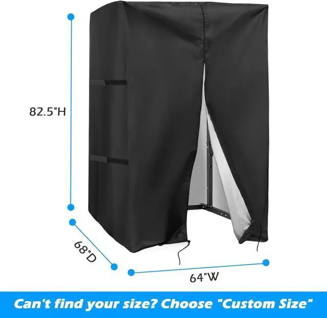 SIZE: Our outdoor squat rack cover measures 64"W x 68"D x 82.5"H, making it suitable for slightly smaller squat racks. If you require a custom size, please feel free to contact.