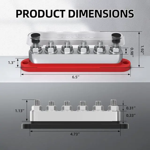 0.64" ClearanceStrategically spaced M10 studs easily fit large AWG 1/0 lugs without interference. Say goodbye to crowded, overlapping, or messy connections.