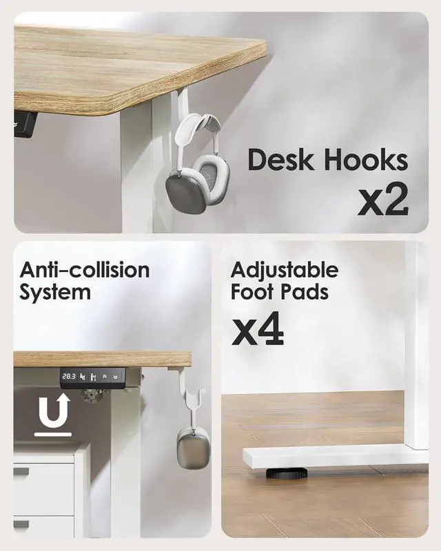 A Comfortable Workspace - The height adjustable desk features a scratch-resistant and solid desktop, with smooth edges for collision protection. The spacious desktop is made of FSC-Certified wood and can support a wide range of office equipment, making a comfortable and productive workspace for you.