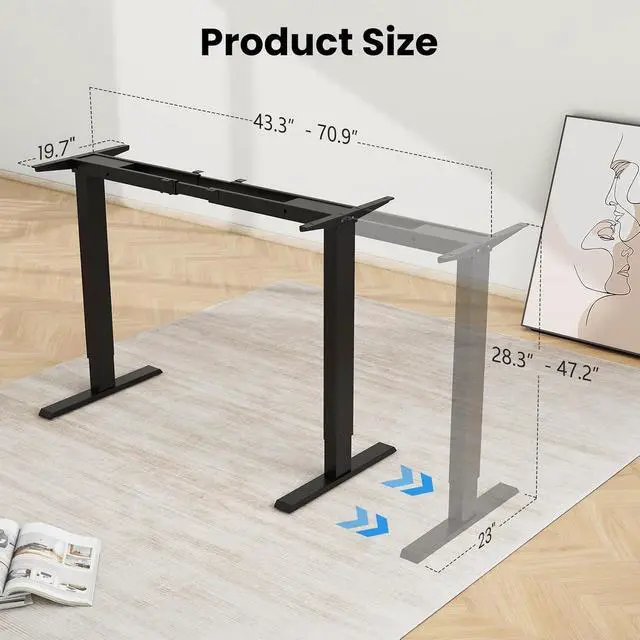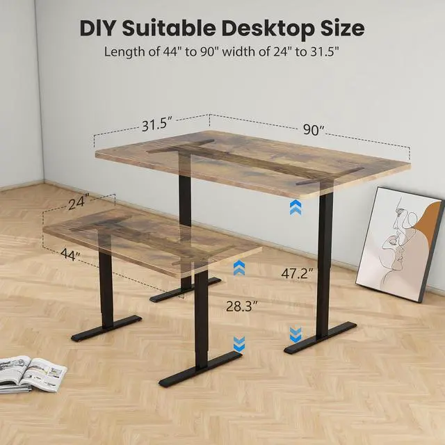 Assemble & Use: Equipped with complete set of tools, headphone hook and parts. Complete installation manual included. You can choose any type of desk top. Extra-Long extension cord will fit a larger desktop situation. Height adjustable electric desk ( desktop not included) Intelligent Control Panel. Switch suitable height by up-down push button controller.