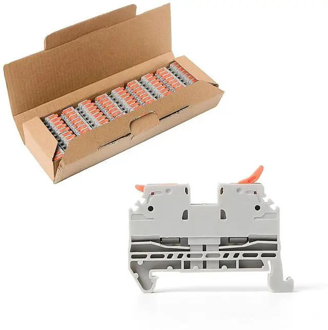 50Pcs KV 2.5 Terminal Blocks, 28-12 AWG Compact Wire Conductor Connectors, DIN Rail Mounted, CE CertifiedUpgrade your electrical wiring with the 50Pcs KV 2.5 Terminal Blocks, designed to deliver superior performance and safety in a variety of electrical applications. These compact and durable terminal blocks are perfect for use in industrial, residential, and commercial wiring systems.