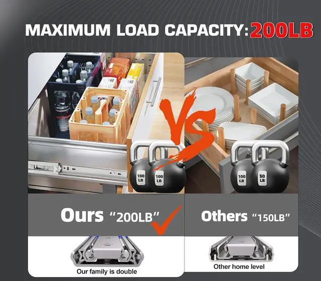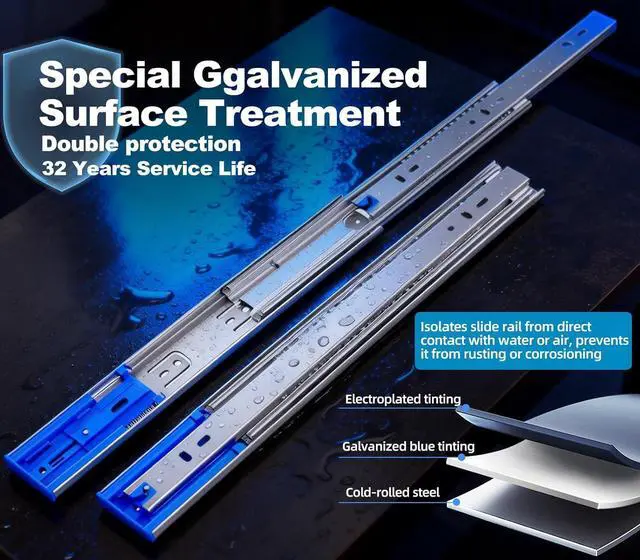 Lifespan & Professional Anti-rust: 's heavy-duty ball bearing slides feature a specialized galvanized seal that isolates metal from moisture and air. This advanced protection prevents rust, ensuring a service life exceeding 32 years, even in humid garages, kitchens, or workshops.