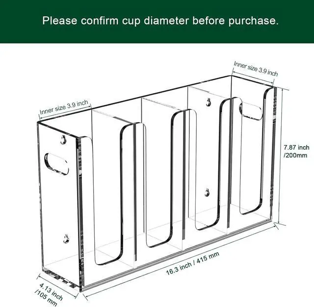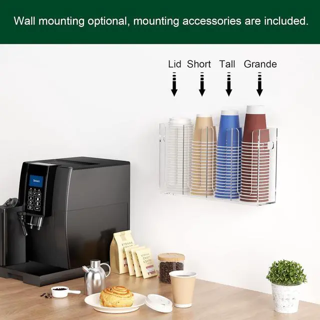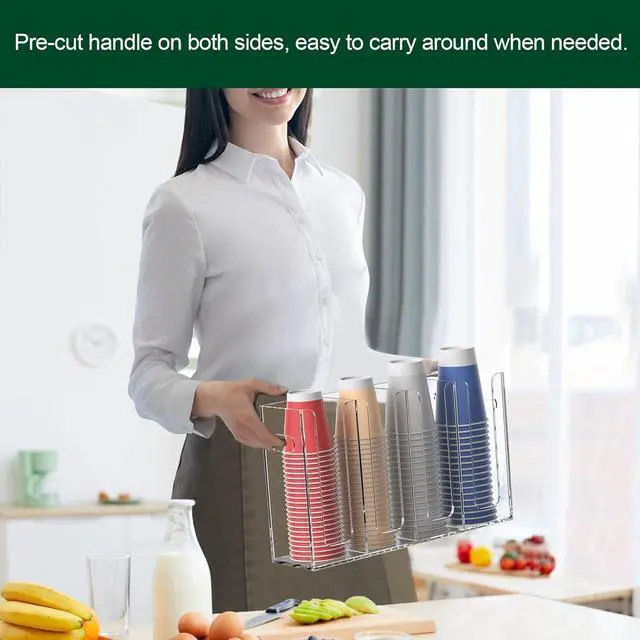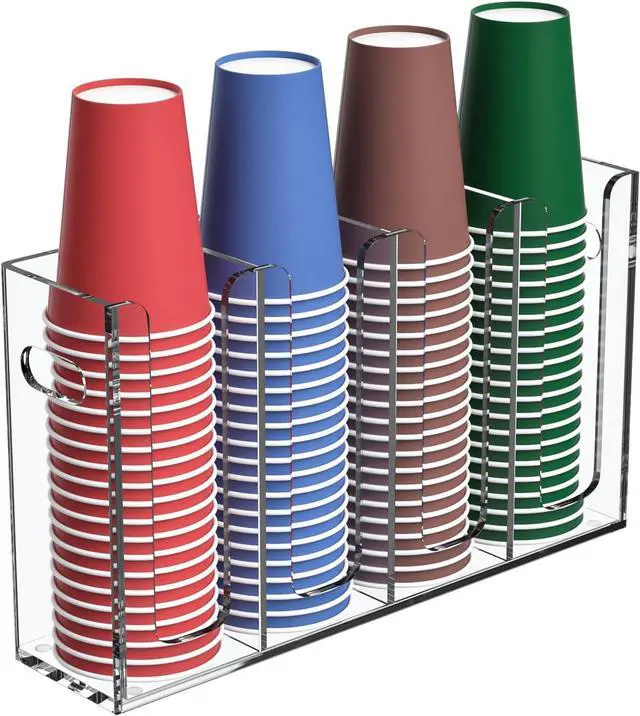 Material - made of 4mm thickness acrylic, the disposable cup organizer is an ideal container to make your home kitchen bathroom or break room office coffee station area less cluttered, it keeps plastic or paper coffee cups or tops organized. No more cups and lids floating around when wind picks up.