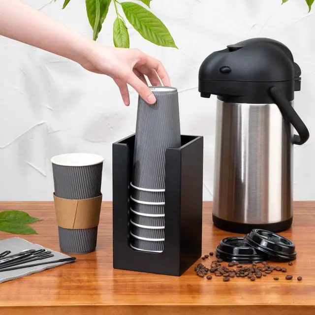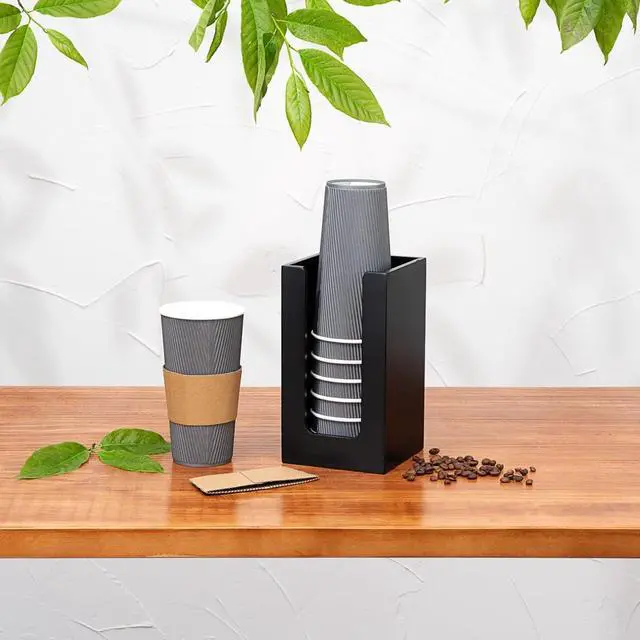 Ensure your coffee station stays tidy with the Restpresso Black Bamboo Coffee Cup Organizer. This space-saving coffee cup organizer, with dimensions of 4.5 inches by 4.5 inches by 8 inches, optimizes counter space while providing ample storage for coffee accessories. Its durable black bamboo construction offers a stylish solution that withstands daily use, making it perfect as a cup lid holder in high-traffic areas. Designed for easy organization, this countertop coffee station organizer keeps cups, lids, and napkins readily accessible, enhancing service efficiency. Its sleek black finish not only complements any decor but also enhances the appearance of upscale pastry presentations, ensuring your station looks professional and inviting. Elevate your beverage service with this versatile organizer, ideal for cafes, restaurants, and office breakrooms. Each order includes 1 Restpresso Black Bamboo Coffee Cup Organizer.