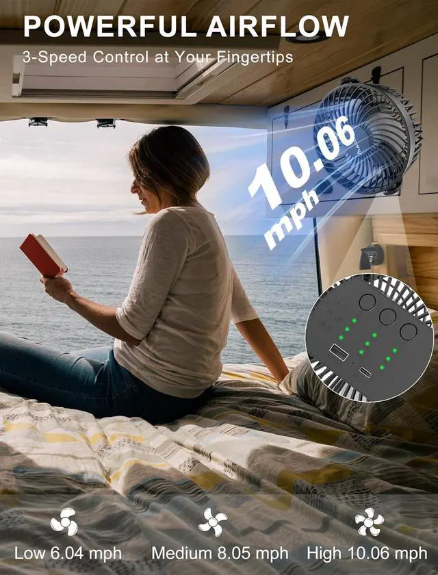 Ultra-Quiet Operation with Powerful Airflow Designed with a high-performance brushless motor and aerodynamic fan blades, this magnetic fan delivers strong and steady airflow with minimal noise. With three adjustable speed settings, it meets all your cooling needsmaking it an essential cruise ship accessory for your cabin, balcony, or outdoor lounging.