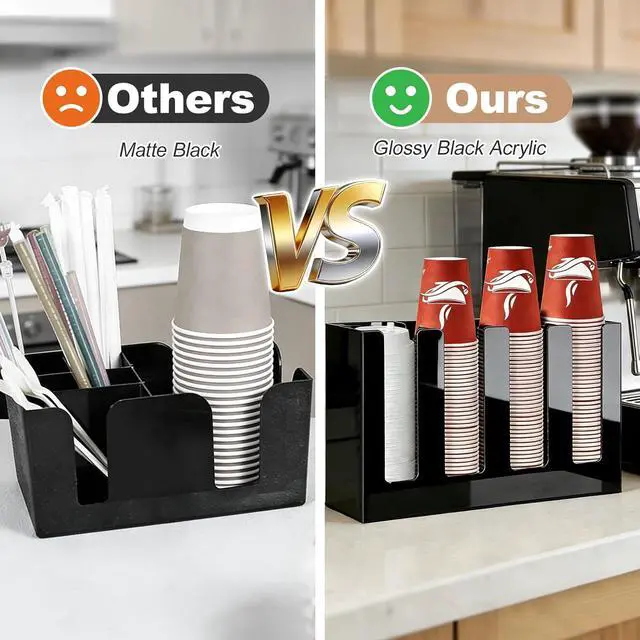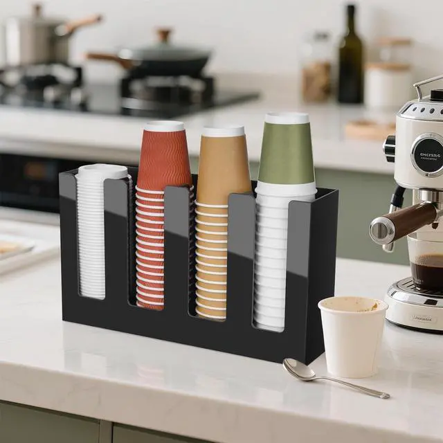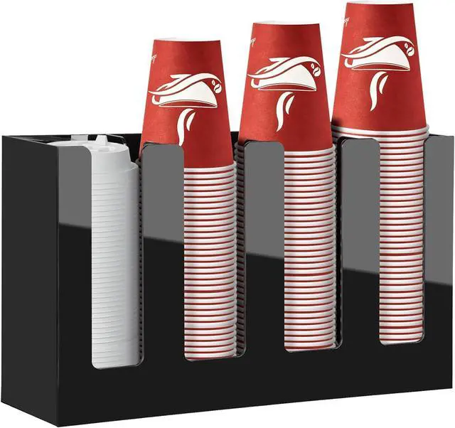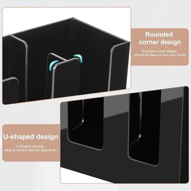Impact: Maximize your precious counter space! This compact cup and lid organizer, measuring 16" x 4" x 8" (with a 0.12" thickness), nestles perfectly anywhere. From cramped kitchen corners to bustling café counters, it keeps your cups organized and readily available.