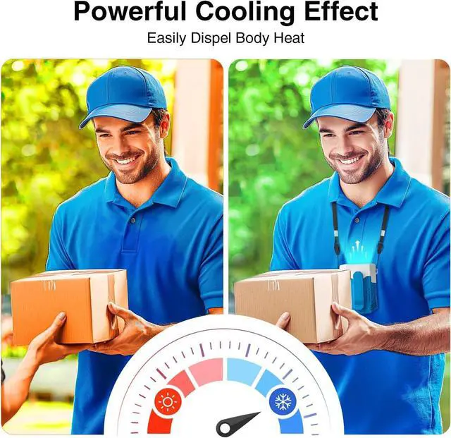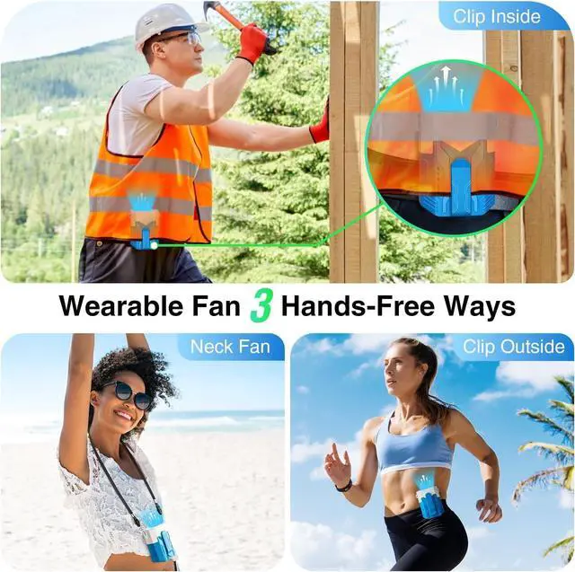 The unique design of this wearable fan, the combination of Low-Noise Motor and Propeller Type 5 Fan Blades, and the air outlet grille successfully controls the noise to 34-59dB. Born for quality and bring you a comfortable experience