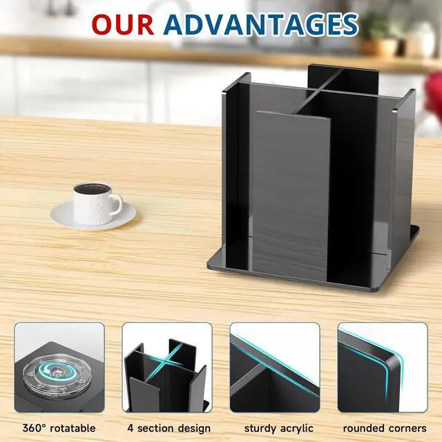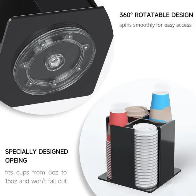 Large Capacity: NO CUPS INCLUDED, square acrylic cup holder fits 4 to 12 oz cups and lids, with 4 individual compartment, disposable cups, lids and sugar packets or coffee tea condiments can be stored separately, cup and lid organizer keeps your kitchen bar countertop more organized