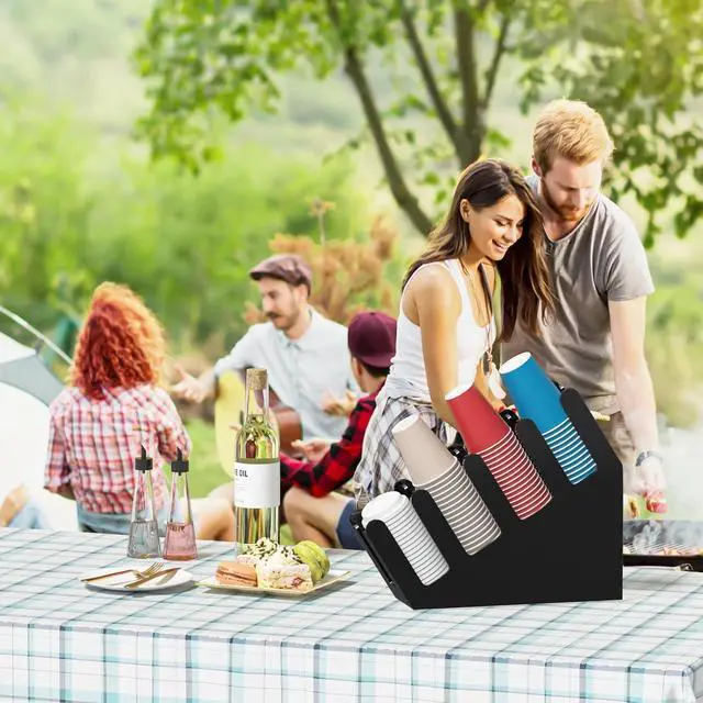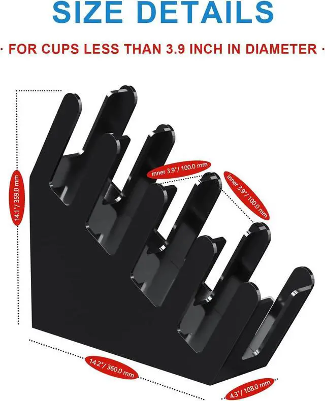 • NO ASSEMBLY REQUIRED: well made of thick acrylic, modern and sleek, this tilted coffee cup holder for countertop comes all assembled and ready to load coffee and beverage cups and lids with size range of 8 oz, 12 oz, 16 oz, 20 oz hot or cold cups when placing right next to your nin ja slushi machine in high traffic area, red party cups, disposable paper cups or plastic cups with standard cup rim of 3.54 inch diameter fits in the cup storage rack easily