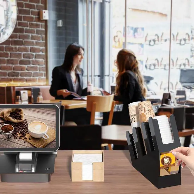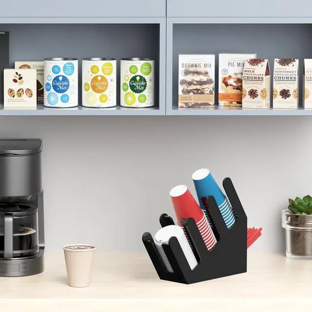 STRONG AND STURDY: ample space for storage, disposable cups, straws, spoons, forks, knives, napkins, condiments are easily accessible when storing in multiple racks neatly and orderly, effectively keeps coffee station accessories organized, this slanted acrylic cup and lid holder as coffee shop essentials is easy to clean, heavy duty coffee bar organizer is convenient for grabbing on-the-go cups, wide openings on each compartment helps ease on refills and take out the disposable coffee cups