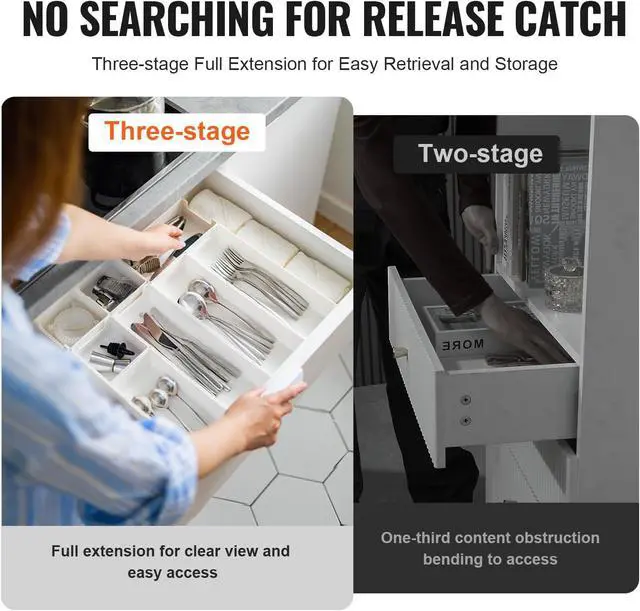 Installation Guidance: Easily address the pain points of using bottom-mount concealed drawer slides, suitable for drawer side panels with thicknesses of 1/2 inch and 5/8 inch, making the installation process simpler and avoiding unnecessary hassles.