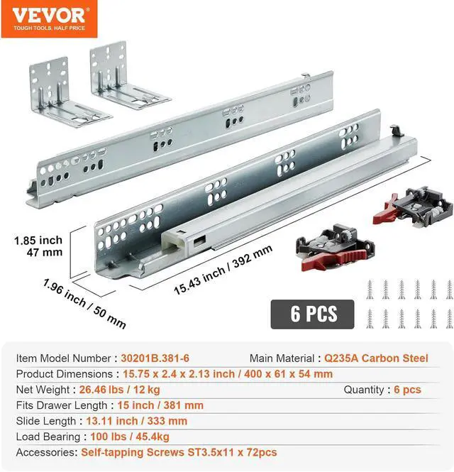 Universal Sizes: Available in 15", 18", and 21" universal sizes, compatible with various mainstream drawer slide brands, offering flexible replacement options.
