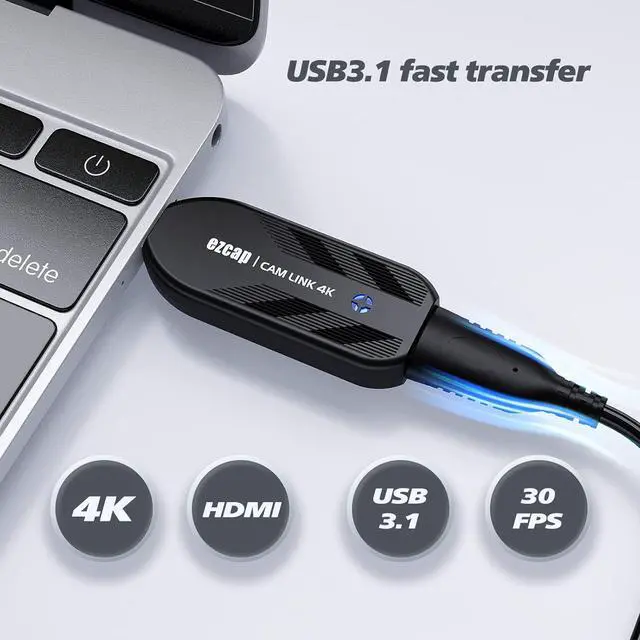 USB 3.1 Game Capture Card: Super-fast USB 3.1, plug and play, UVC standard, no driver installation required. Suitable for beginners, this game video capture device is sleek, compact, and standardized. With high-speed USB 3.1 transmission, it makes live streaming your gameplay easier