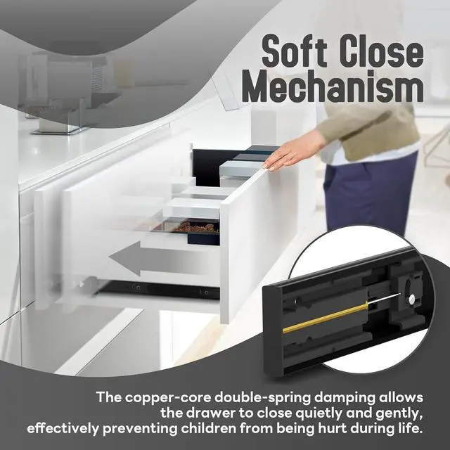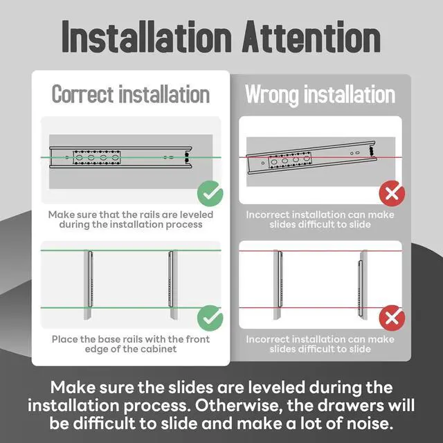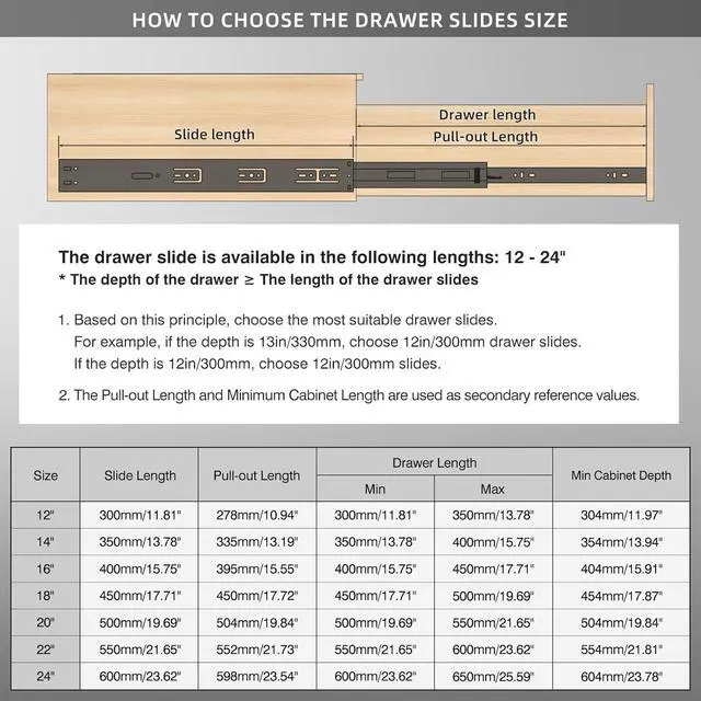 Full Extension & Removable There is a black plastic buckle on the back of the slide rail, which can be easily disassembled by pressing the inner rail, which is convenient for installation. Fully extendable rails make storage easy.