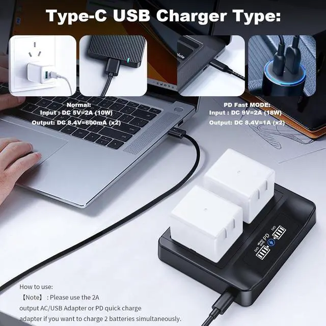 2.5H fully charged& LED Charging IndicatorWhen used as a battery charging station, it can charge two batteries simultaneously. With PD Quick Charge Mode enabled, batteries can be fully charged in just 2.5 hours. (The charging surface may feel slightly warmthis is normal. )