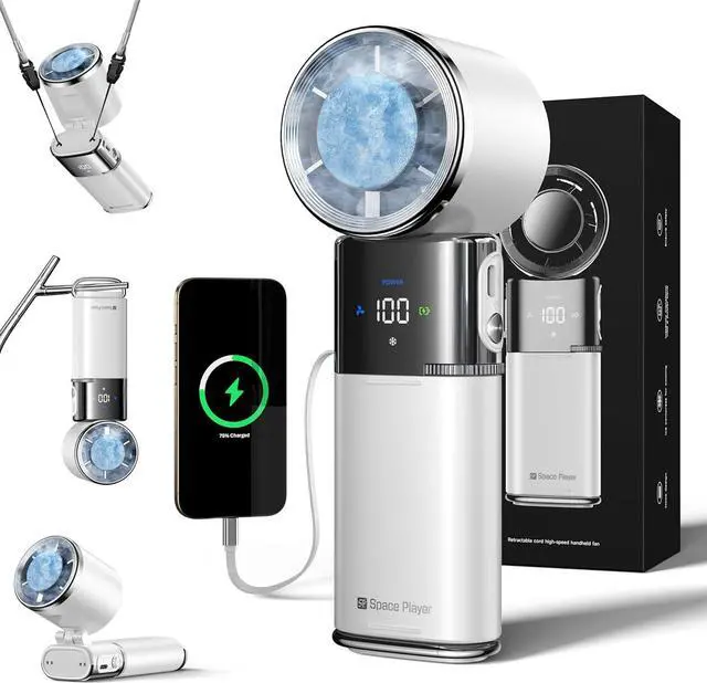 Hidden 38cm Retractable Type-C Cable An integrated retractable Type-C cable (38cm) stores neatly inside the fanpull it out for charging and retract with one click. No need to carry extra wires; stay connected effortlessly on the go