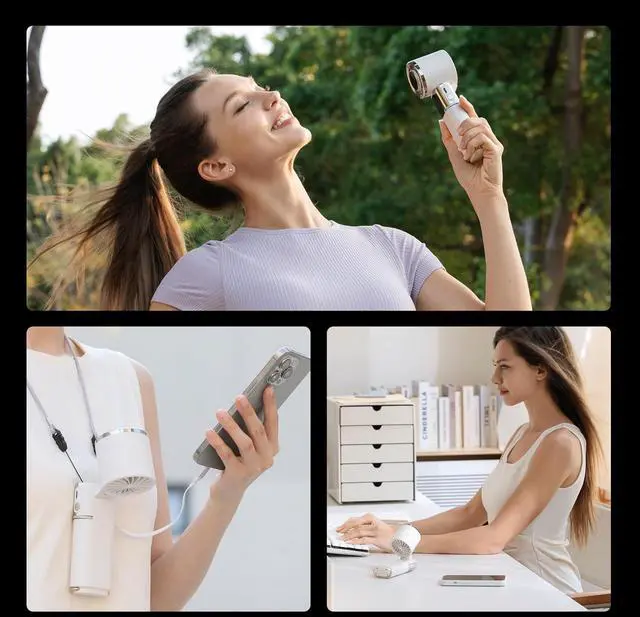 3 IN 1 Multi-Purpose Design Adjust to a maximum 135° tilt angle to use as a desk fan or hang around your neck as a neck-mounted fanversatile cooling for every scenario