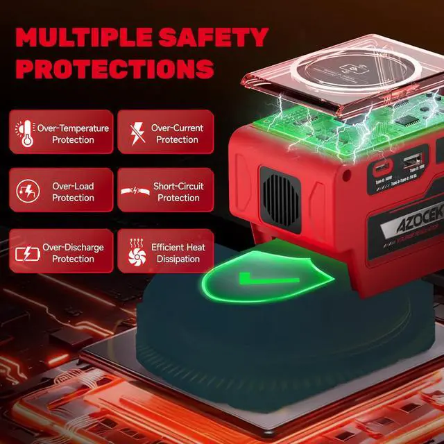 Stable Power & Full Safety Protection: Built-in protection against short circuit, overcurrent, low voltage, overheating, overload, and over-discharge. An integrated cooling fan ensures efficient heat dissipation and stable performance under heavy loads