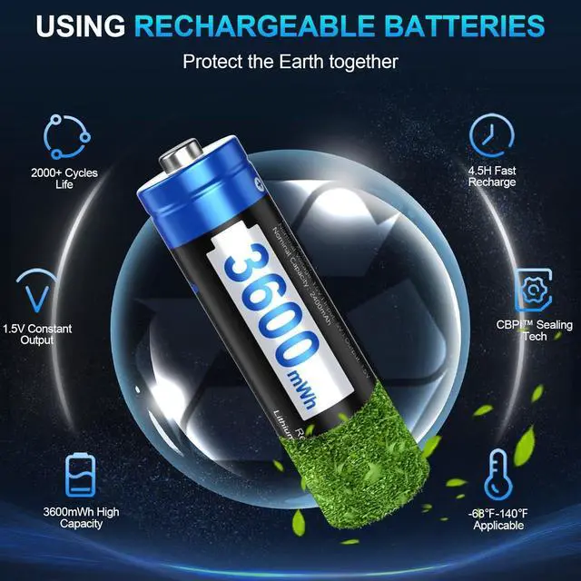 Advanced CBPI AA Lithium Rechargeable Batteries: With 96.8 % space efficiency, these 1.5V lithium batteries aa rechargeable deliver 2000+ cycles and superior power density and outperforming NiMH/alkaline in lifespan, safety and compact performance